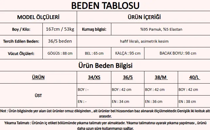 Ürün İçeriği               : %95 Pamuk, %5 Elastan