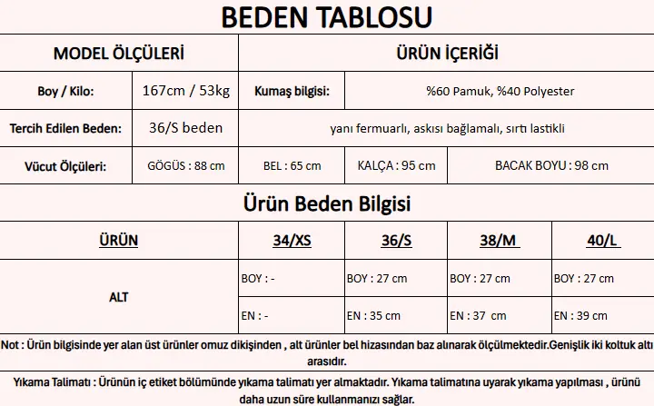 Model Ölçüleri : 167cm/53kg