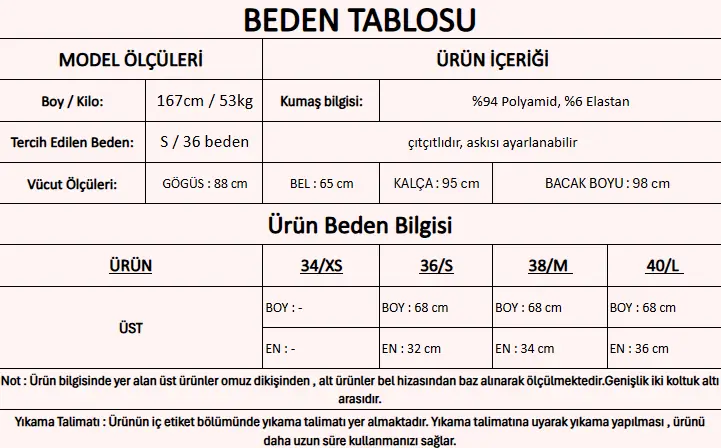 Ürün İçeriği : %94 Polyamid, %6 Elastan