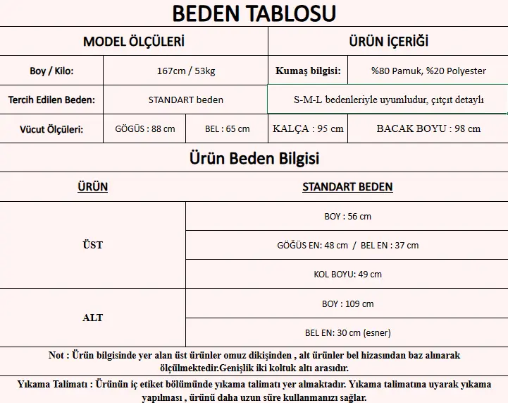 Ürün İçeriği : %80 Pamuk, %20 Polyester