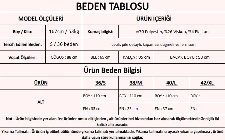 Ürün İçeriği               : %70 Polyester, %26 Viskon, %4 Elastan