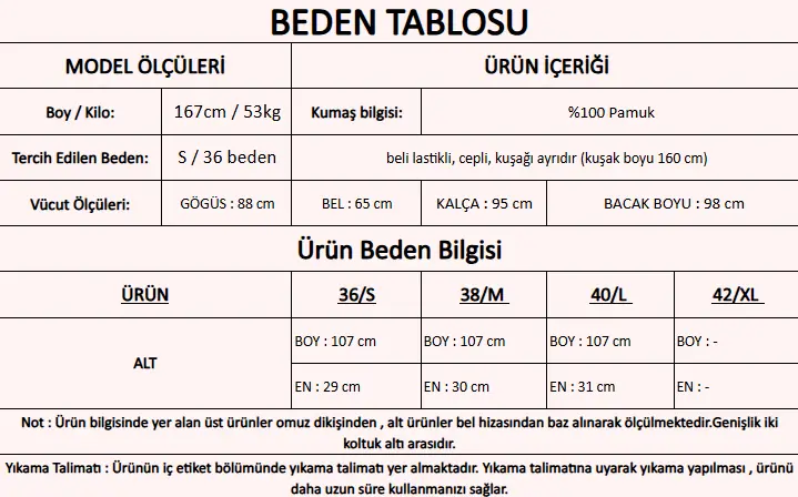 Ürün İçeriği : %100 Pamuk