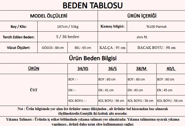Model Ölçüleri : 167cm/53kg