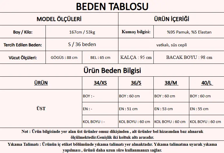 Ürün İçeriği :%95 Pamuk, %5 Elastan