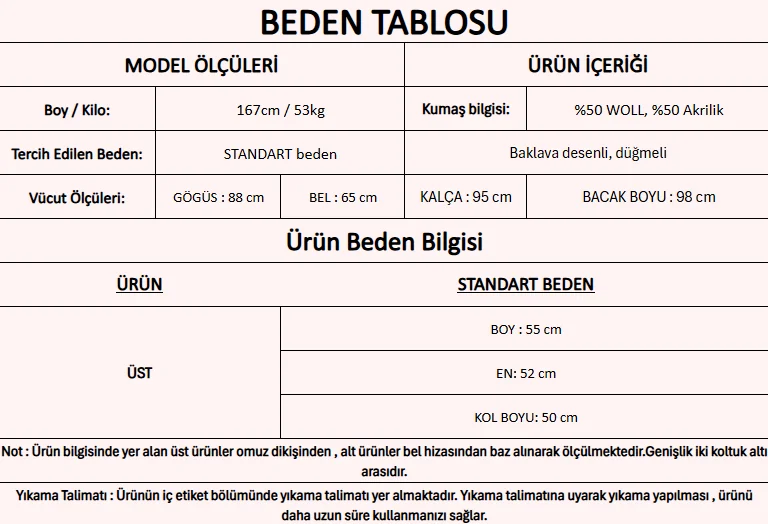 Ürün İçeriği : %50 Woll, %50 Akrilik