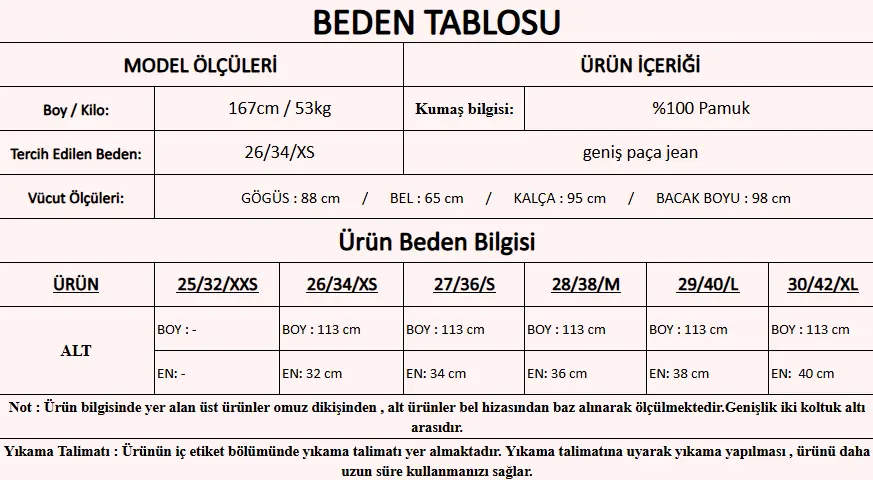 Modelin Beden : 26 beden