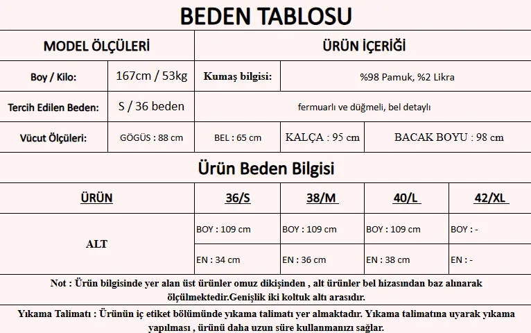 Ürün İçeriği : %98 Pamuk, %2 Likra