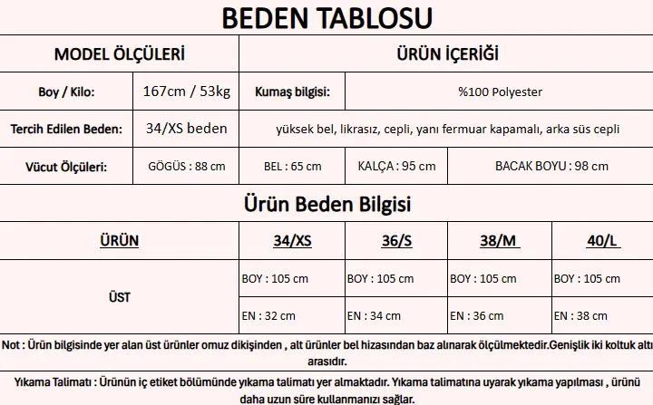 Ürün Boyu                 : 105 cm