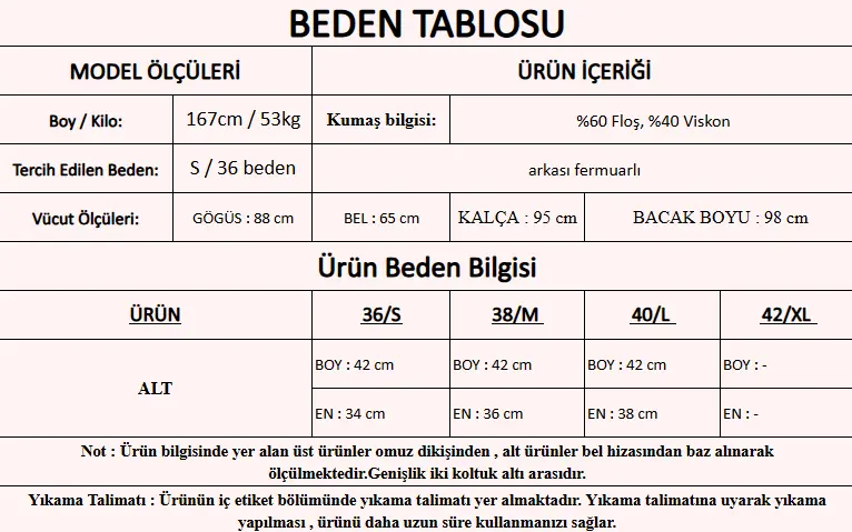 Ürün İçeriği               : %60 Floş, %40 Viskon
