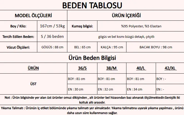 Ürün İçeriği               : %95 Polyester, %5 Elastan