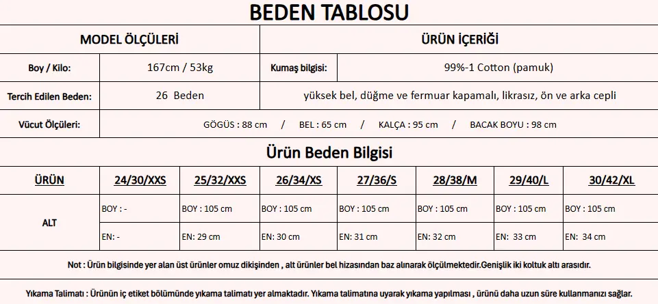 Modelin Beden : 26 beden