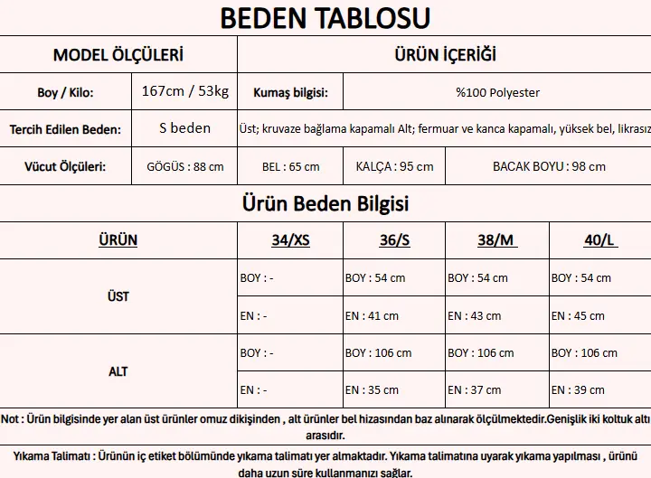 Ürün Boyu                 : Alt 106 cm