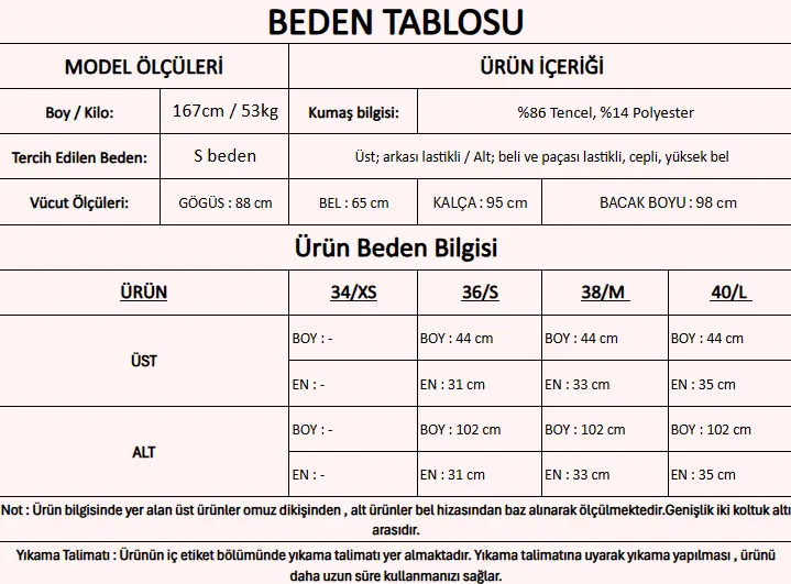 Ürün İçeriği               : %86 Tencel, %14 Polyester