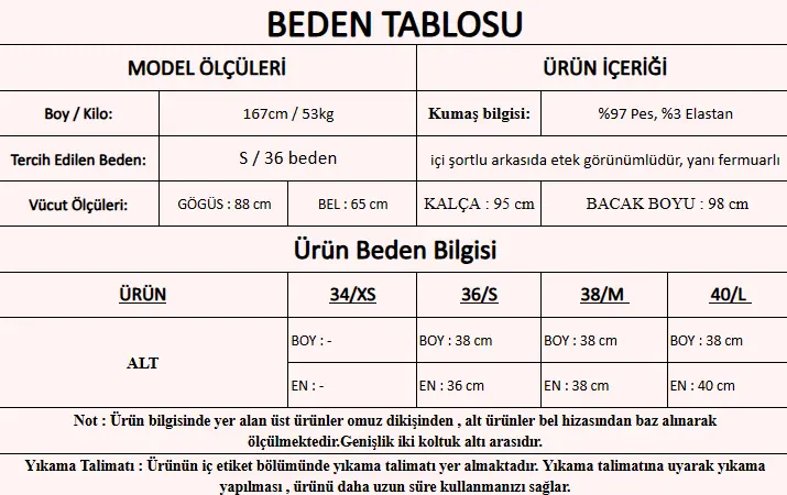 Ürün İçeriği : %97 Pes, %3 Elastan