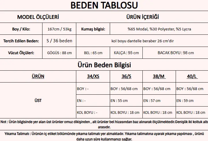 Ürün İçeriği : %65 Modal, %30 Polyester, %5 Lycra