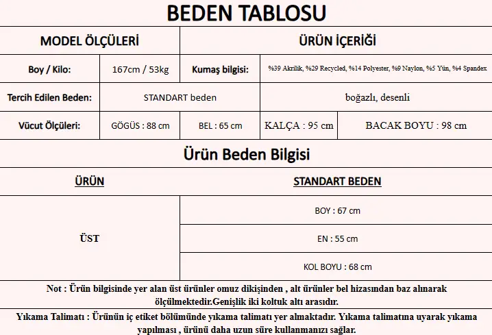Ürün İçeriği               : %39 Akrilik, %29 Recycled, %14 Polyester, %9 Naylon, %5 Yün, %4 Spandex