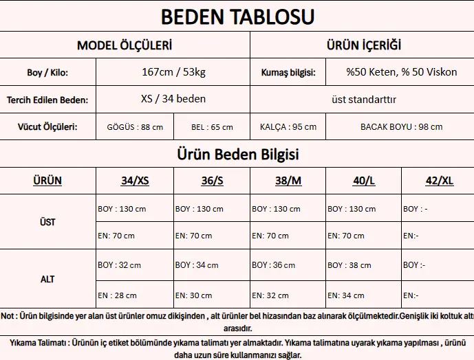 Ürün İçeriği : %50 Keten, %50 Viskon