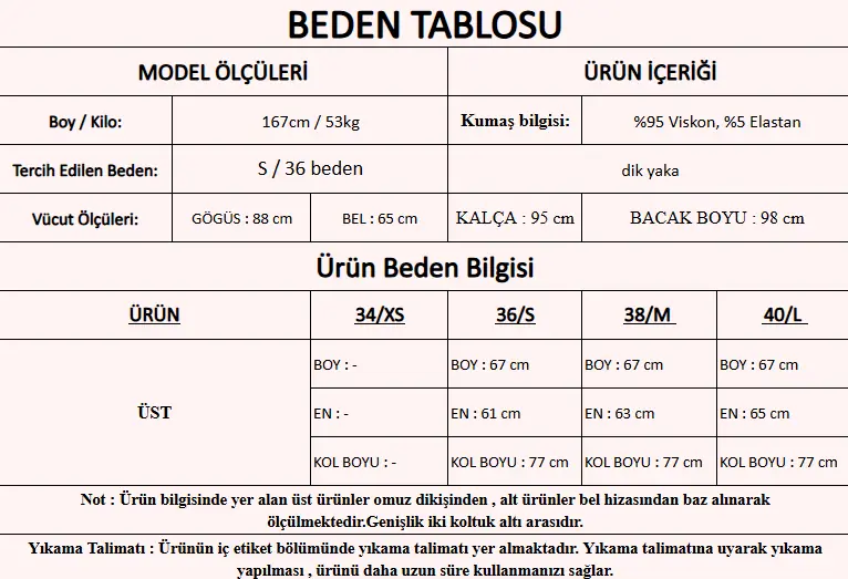 Ürün İçeriği               : %95 Viskon, %5 Elastan
