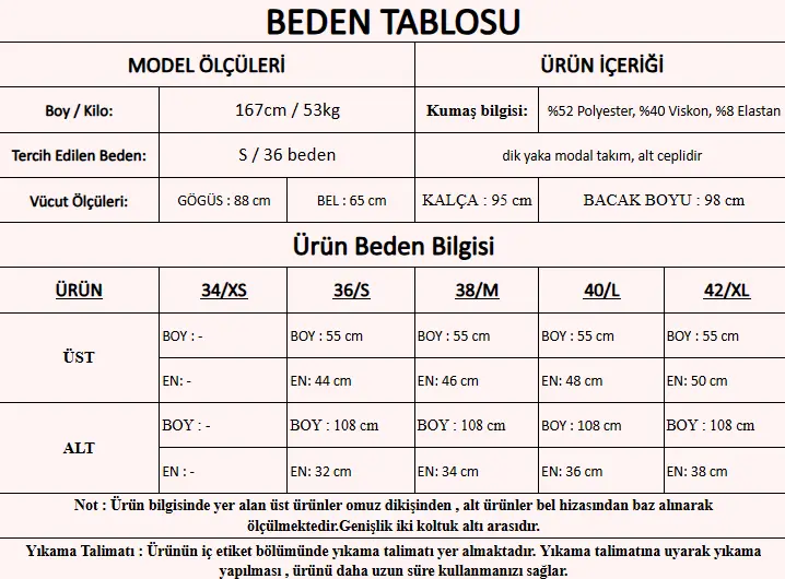Ürün İçeriği : %52 Polyester, %40 Viskon, %8 Elastan