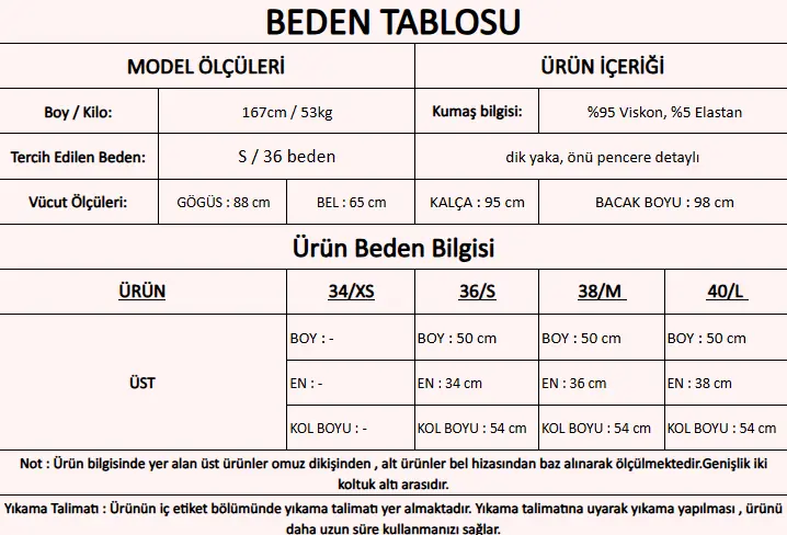 Ürün İçeriği : %95 Viskon, %5 Elastan