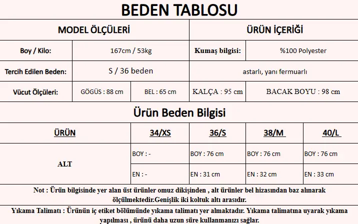Modelin Beden : S Beden