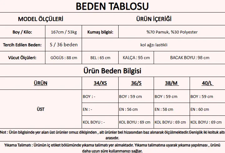 Ürün İçeriği               : %70 Pamuk, %30 Polyester