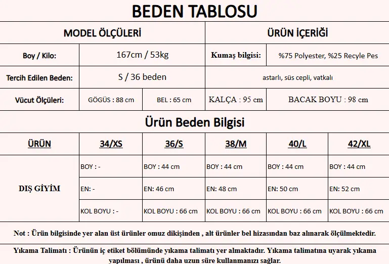 Model Ölçüleri : 167cm/53kg