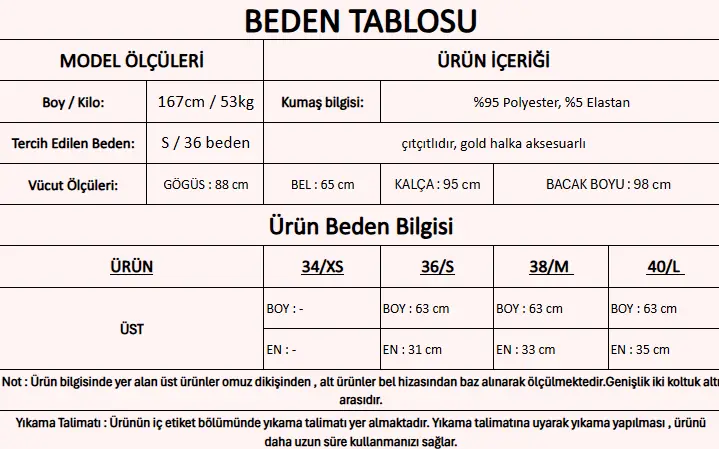Ürün İçeriği : %95 Polyester, %5 Elastan
