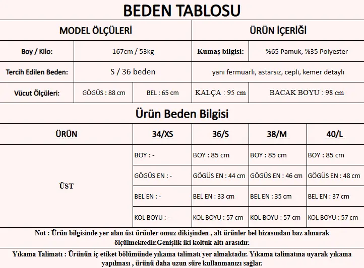 Ürün İçeriği : %65 Pamuk, %35 Polyester