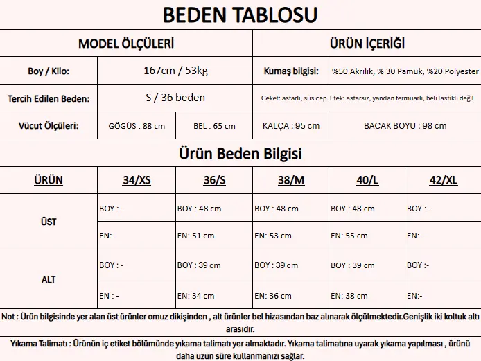 Ürün Boyu : Ceket 48 cm, Etek 39 cm