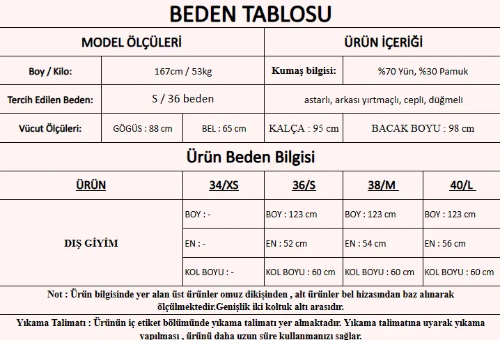 Ürün İçeriği : %70 yün, %30 Pamuk