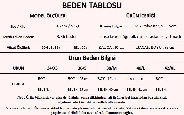 Ürün İçeriği : %97 Polyester, %3 Likra