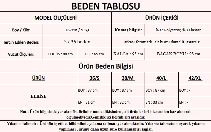 Ürün İçeriği : %92 Polyester, %8 Elastan