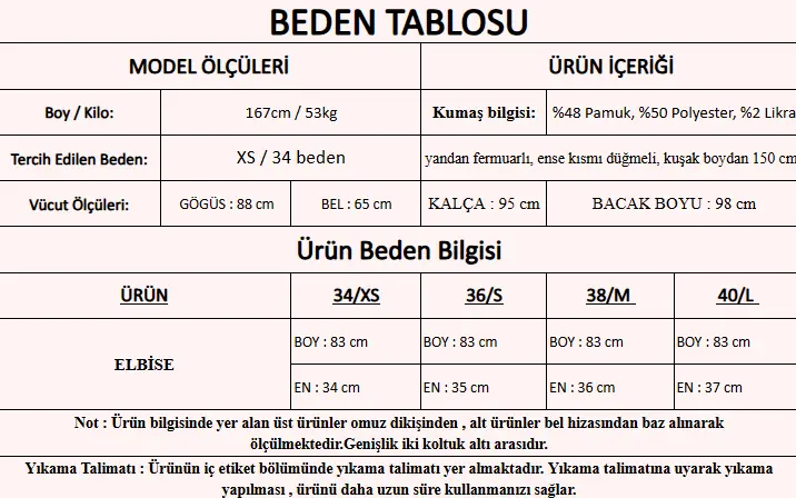 Ürün İçeriği : %48 Pamuk, %50 Polyester, %2 Likra