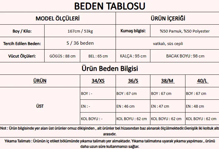 Ürün İçeriği : %50 Pamuk, %50 Polyester