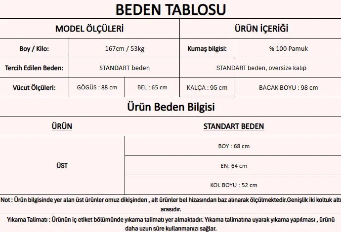 Modelin Beden : STANDART beden
