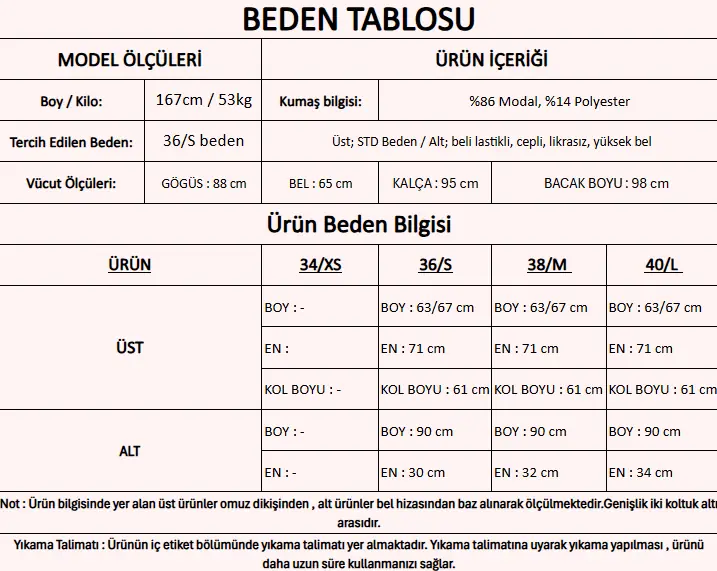 Ürün İçeriği               : %86 Modal, %14 Polyester