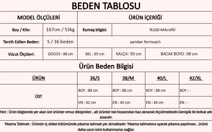 Modelin Beden         : S beden