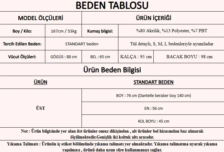 Modelin Beden : STANDART beden
