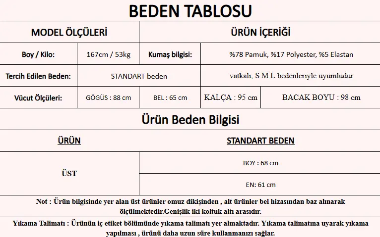 Ürün İçeriği               : %78 Pamuk, %17 Polyester, %5 Elastan