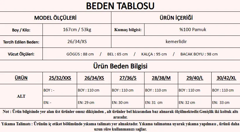 Model Ölçüleri : 167cm/53kg