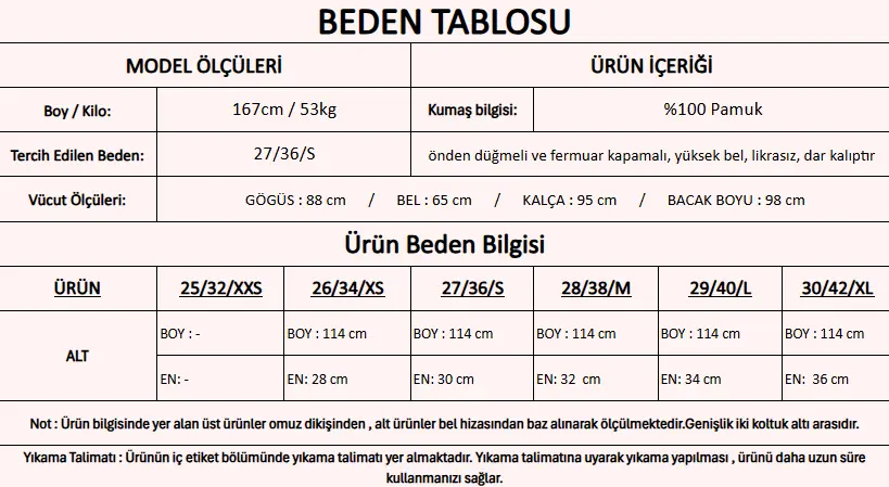 Modelin Beden : 27 beden
