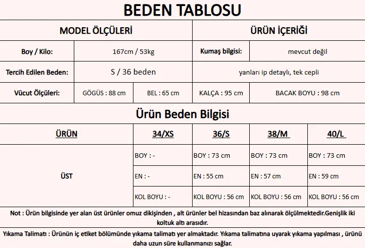 Model Ölçüleri : 167cm/53kg