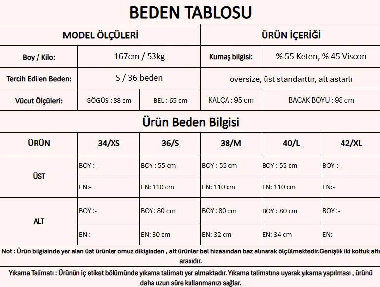 Ürün Boyu : Üst 55 cm / Alt 80 cm